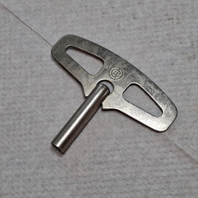 古時計のゼンマイを巻く/緩めるときに使用する専門工具。 ゼンマイを安全に作業できる工具です。 サイズ:縦70mm 横105mm 高さ60mm 注意:ゼンマイの取り扱いには十分安全確認をして気を付けて作業をお願いします。 作業時には分厚い手袋を使用してください。 ゼンマイ取付ギアのゼンマイ巻き側の軸径が5㎜以下でないと 作業できません。ご確認お願いいたします。